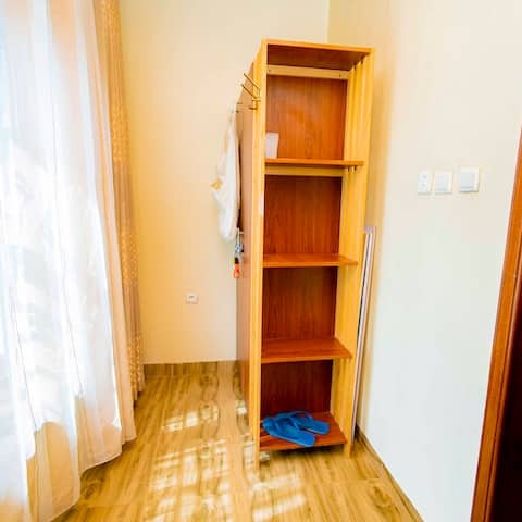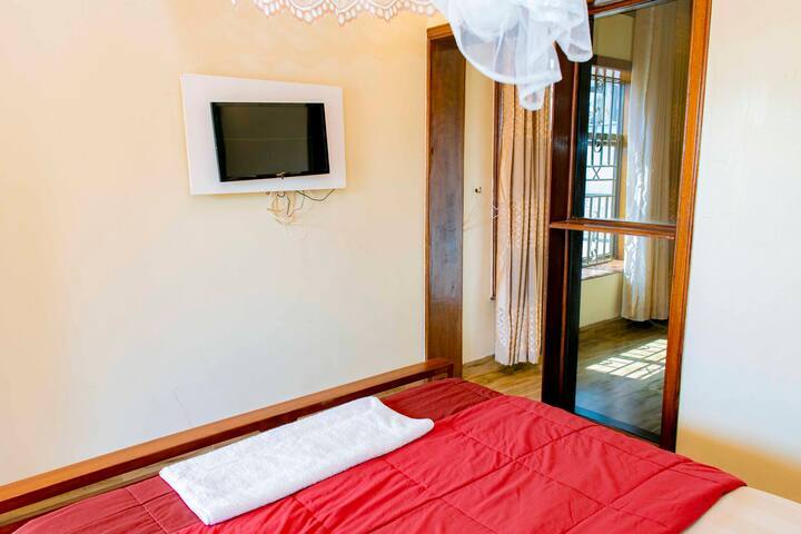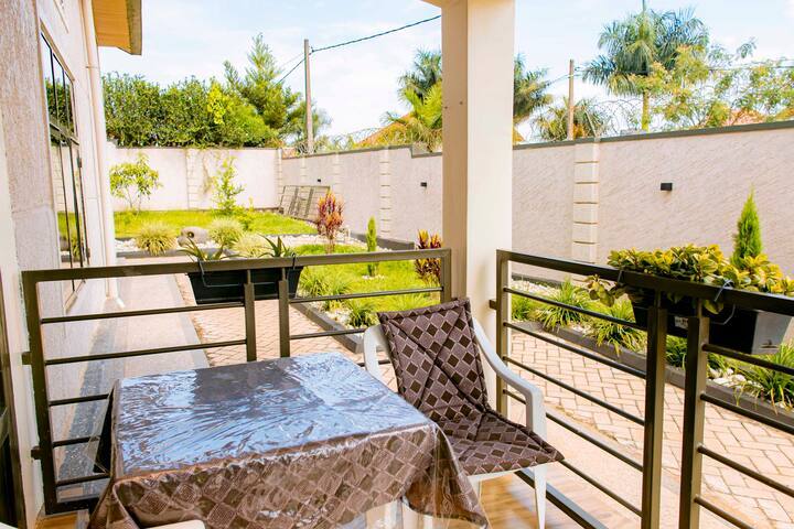 Comfortable double room with direct access to a private terrace overlooking the garden. Located in a quiet guest house in Gisozi, Kigali, this room offers a peaceful retreat for couples or solo travelers. Includes a private bathroom, cozy bedding, and natural light. Enjoy morning coffee or evening relaxation on the terrace. Amenities include free Wi-Fi, daily cleaning, and secure parking. Close to local shops and attractions. A perfect blend of comfort, privacy, and outdoor charm.